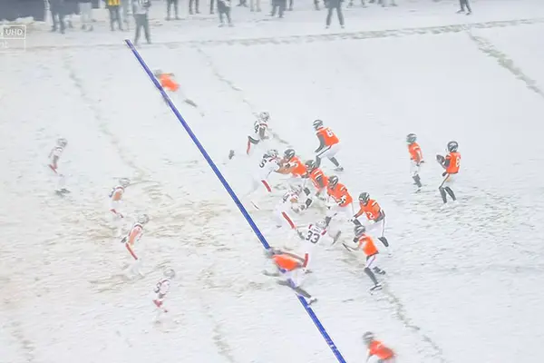 Con el campo completamente blanco, las transmisiones recurrieron a gráficos digitales para marcar las yardas ante la falta de visibilidad. Esta final de la AFC registró un punto crítico de -12 °C y una sensación térmica de -21 °C, cifras que la colocan entre las más frías de la era moderna.