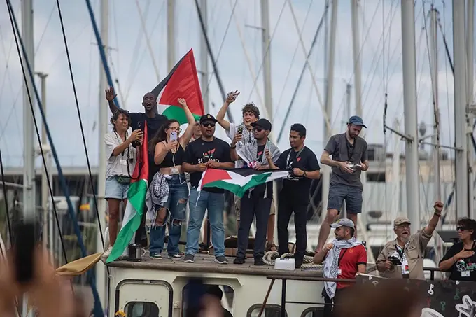La Marina israelí detuvo el 1 de octubre de 2025 a la Flotilla Global Sumud, compuesta por 47 embarcaciones y más de 500 voluntarios que transportaban ayuda humanitaria hacia la Franja de Gaza, en aguas internacionales del Mediterráneo oriental, a unas 80 millas náuticas de Gaza. Israel abordó principalmente el barco Alma, en el que viajaba la activista Greta Thunberg.