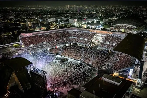 El tráfico detenido en Viaducto Río de la Piedad al caer el sol no anunciaba solo un concierto. La hilera de autos, los fans con actitud devota y los vendedores con camisetas y gorras marcaban el inicio de un ritual. Entre luces y pantallas tomaba forma la nueva religión del mundo moderno digital, esa que no necesita templos tradicionales porque convierte cualquier estadio en altar.