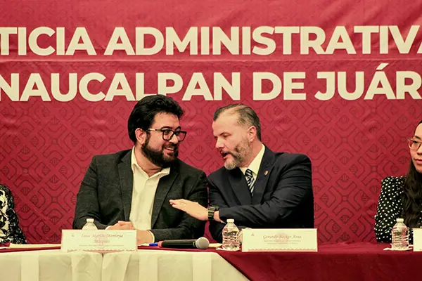 El presidente municipal de Naucalpan, Isaac Montoya Márquez, y el magistrado presidente del Tribunal de Justicia Administrativa del Estado de México, Gerardo Becker Ania, encabezaron la firma de un Convenio de Colaboración que busca fortalecer la relación institucional entre el ayuntamiento y el tribunal, con el propósito de consolidar una administración pública más transparente y eficiente.