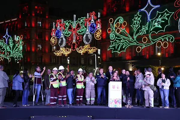 Al encender el alumbrado monumental con motivo de la temporada decembrina en la Plaza de la Constitución, la jefa de Gobierno, Clara Brugada Molina, destacó que el Zócalo capitalino se llena de luz, alegría y convivencia, convirtiéndose en un espacio de esperanza para las familias de la Ciudad de México.